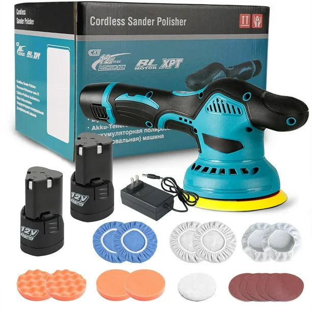 Descubre la Pulidora Inalámbrica 6″/150 mm , con motor brushless de alta potencia (hasta 5 500 RPM), control de velocidad variable y 2 baterías recargables (12 V) para máximo rendimiento sin cables.