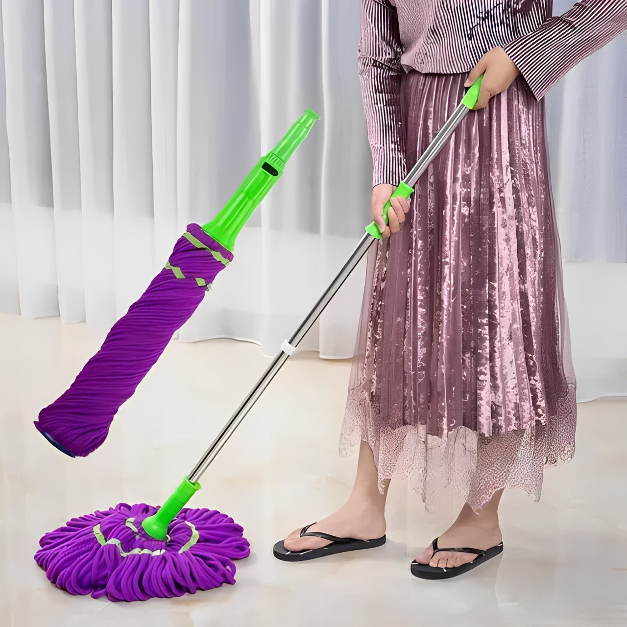 - Microfibra ultra absorbente que deja los pisos impecables, sin manchas.
